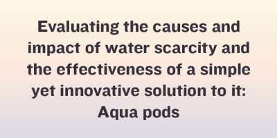 My Lightning Talk will delve into the pressing issue of water scarcity and other global problems exacerbated by the lack of water. I’ll discuss the areas of the biggest water wastage in the human water cycle and how people at an individual level can do their part in conserving water. To conclude, I’ll talk about my project and research which culminated in the development of Aqua-Pods which addresses the problem of overwatering and water conservation.